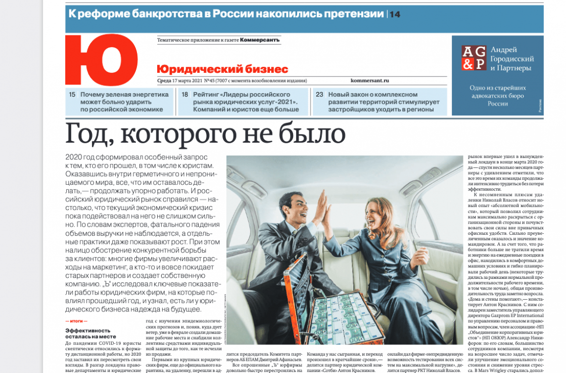 ИД «Коммерсантъ» опубликовал результаты ежегодного исследования юридического бизнеса в России.